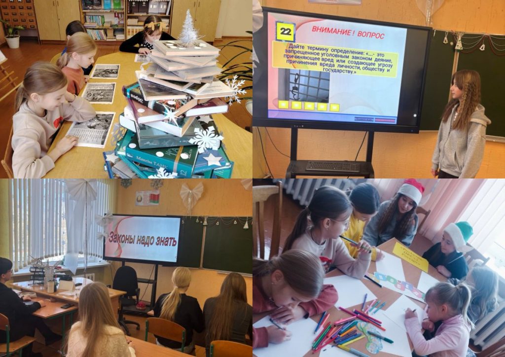 Зимние каникулы — сказочная пора! Каждый ребёнок мечтает провести их весело и получить массу эмоций. Однако, на первом месте-безопасность. В Лукской средней школе ребята приняли участие в викторине «Знаешь ли ты закон?», в спортивных мероприятиях. Заглянули и в библиотеку. Как всегда, классные мероприятия подготовила педагог-организатор. День получился ярким и насыщенным.