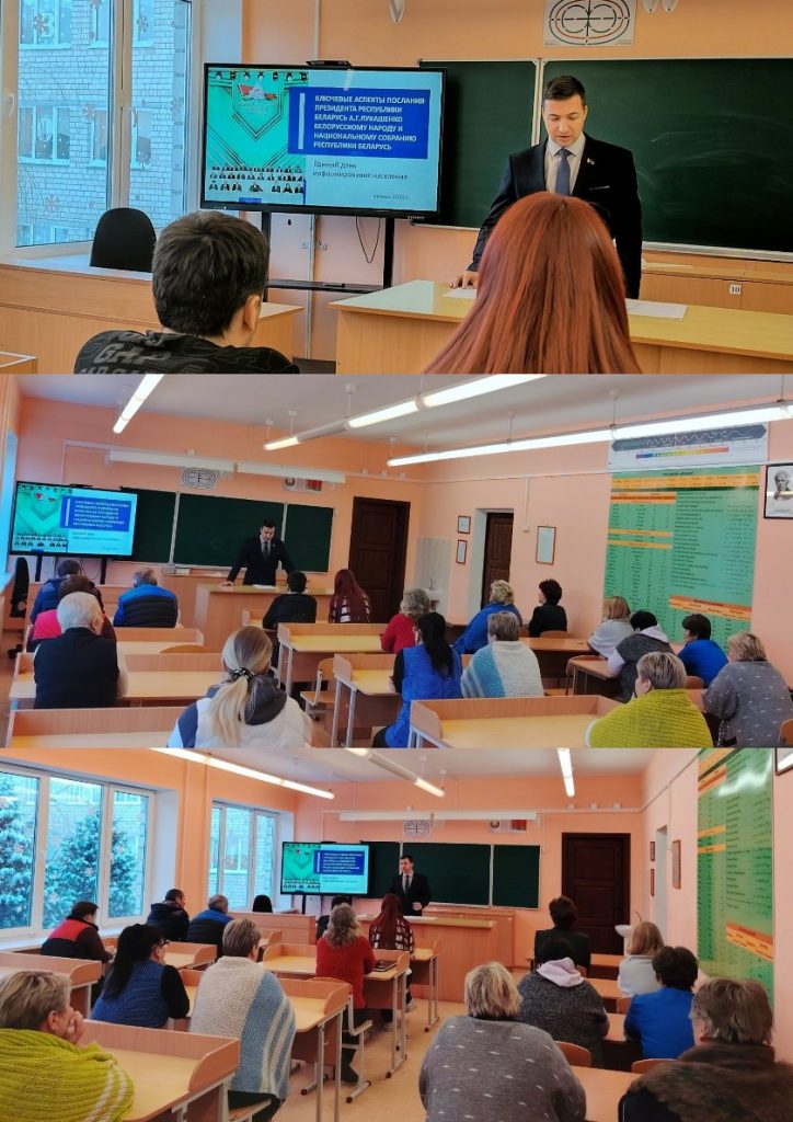 15.01.2026 года в Лукской средней школе прошел Единый день информирования по теме «Ключевые аспекты Послания Президента Александра Лукашенко белорусскому народу и Национальному собранию Республики Беларусь». Директор учреждения образования Д.В.Рублевский особое внимание уделил роли женщины в развитии общества и экономики и отметил, что неслучайно 2026 год объявлен Президентом Годом белорусской женщины. Также Дмитрий Васильевич освятил ключевые темы, затронутые Президентом в обращении к белорусам и Национальному собранию Республики Беларусь: национальная демографическая безопасность, развитие человеческого потенциала, создание качественной и удобной среды для жизни, ускорение технологического развития, цифровая трансформация, сильные регионы, защита суверенитета и независимости Беларуси, туристический потенциал. Были рассмотрены и другие вопросы.