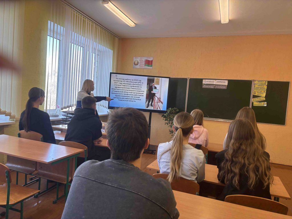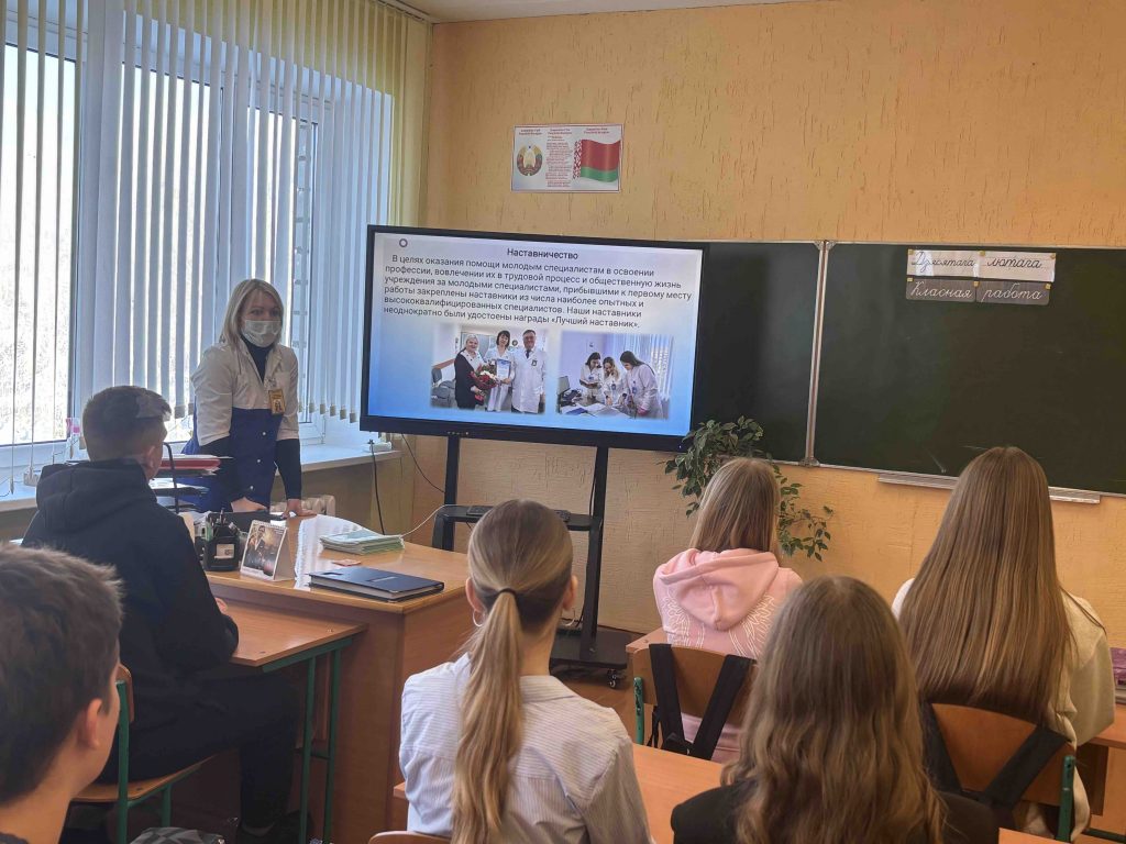 10.02.2026 перед учащимися 9-11 классов Лукской средней школы выступила Желобкова А.Я., старшая медицинская сестра Лукской врачебной амбулатории общей практики. Она рассказала ребятам о работе Жлобинской ЦРБ, медицинских учебных заведениях, о важности деятельности в области сохранения здоровья, а также ответила на интересующие ребят вопросы.