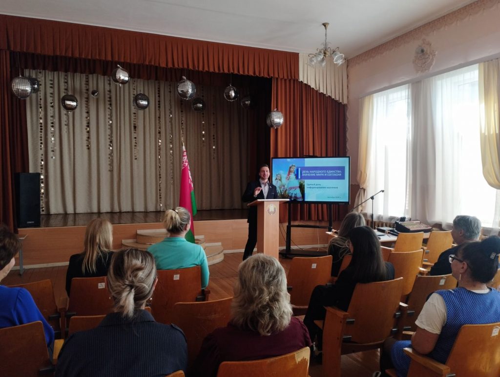 18 сентября в Лукской средней школе прошел Единый день информирования по теме «День народного единства: значение мира и согласия». Директор школы Д.В.Рублевский рассказал о том, что «День 17 сентября – уникальный шанс, который судьба дала Беларуси и нашему народу. Поэтому надо беречь свой народ – и особенно ценить все, что сделали наши предки. Чем они готовы были жертвовать для того, чтобы мы сегодня могли мирно и спокойно отмечать наш праздник – День народного единства». Также были рассмотрены темы: