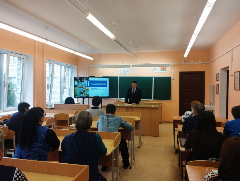 Директор школы Дмитрий Васильевич Рублевский рассказал, что «счастливая семья является одним из приоритетов развития в Беларуси. Укреплять институт семьи, сохранять семейные ценности и передавать традиции – значит инвестировать в будущее. Поэтому государственная политика Беларуси направлена на сохранение семьи, где отец – глава и опора для всего рода, источник накопленного в поколениях опыта, силы и мудрости предков, а мать – хранительница очага и духовный центр семьи, обеспечивающая гармонию и преемственность». Также были рассмотрены вопросы» Профилактика экстремизма «, Профилактика детского травматизма».