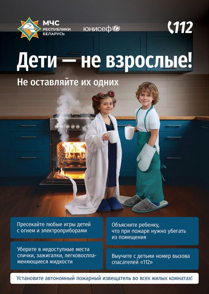 С целью привлечения внимания к проблеме детской шалости с огнем и гибели детей на пожарах, снижения количества чрезвычайных ситуаций с участием детей и обеспечения их общей безопасности с 10 мая по 1 июня пройдёт профилактическая акция «Не оставляйте детей одних!», приуроченная к Международному Дню семьи и Дню защиты детей.