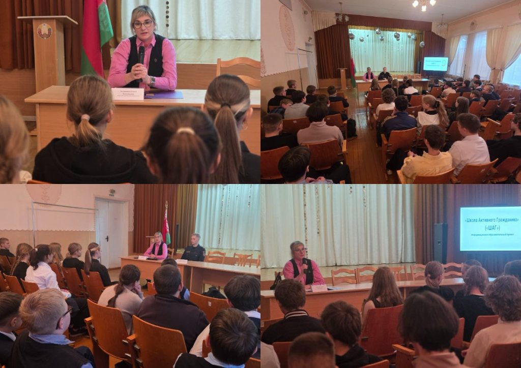Ключевая идея информационно-образовательного проекта «ШАГ» в 2025/2026 учебном году – «Быть достойным гражданином – значит быть активным гражданином Республики Беларусь». Гость мероприятия – инспектор Лукского