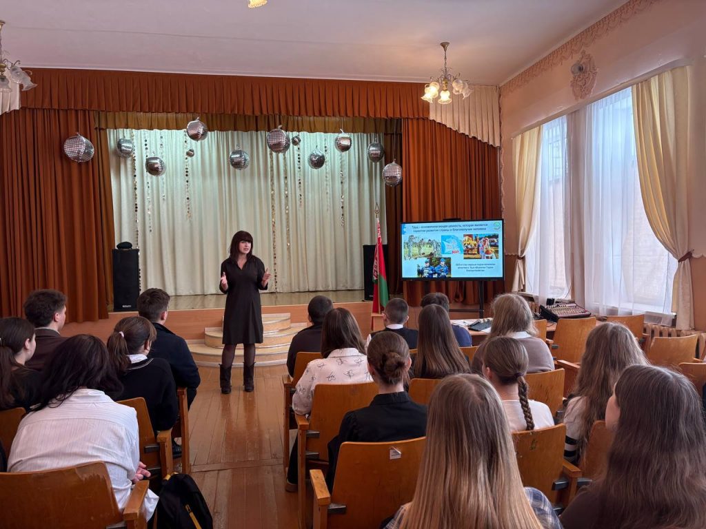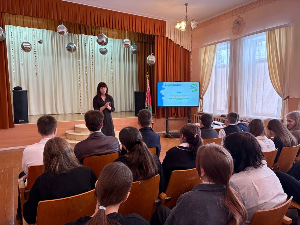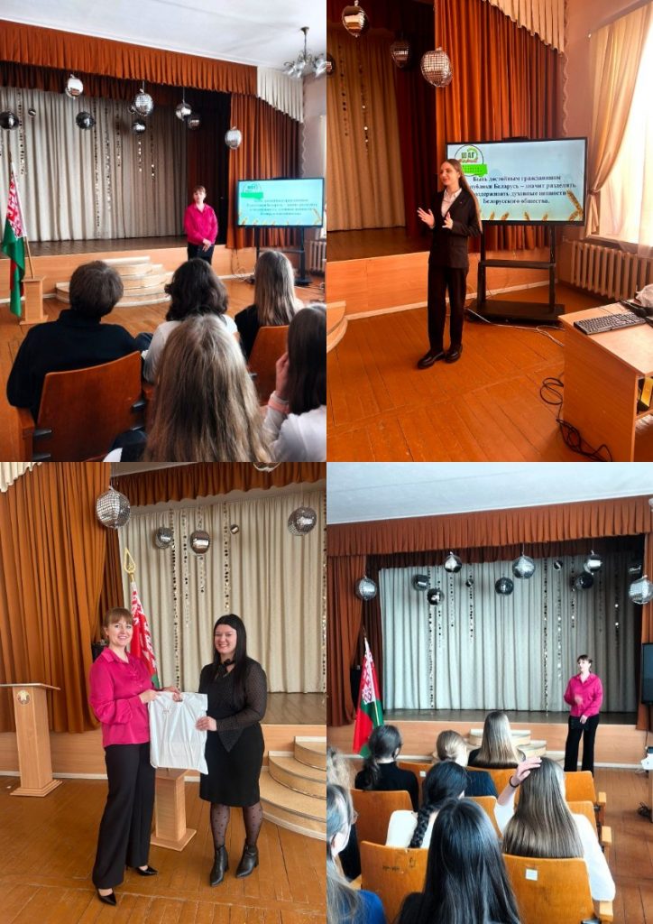 26.02.2026 в Лукской средней школе с учащимися 8-11 классов в рамках информационно-образовательного проекта «ШАГ» – «Школа Активного Гражданина» прошло мероприятие «Быть достойным гражданином Республики Беларусь – значит быть частью белорусского общества» (Что значит быть патриотом? Созидательный труд и порядок во имя процветания Беларуси). Гость мероприятия- Якименко Анастасия Сергеевна, первый секретарь Жлобинского РК ОО «БРСМ».